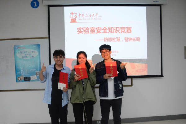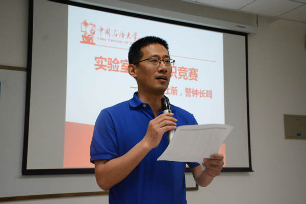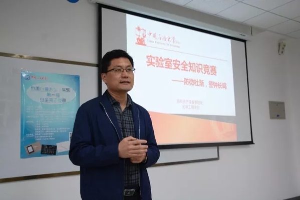 为宣传普及实验室安全知识,增强同学们的安全责任意识和自我保护意识,营造一个安全舒适的学习与生活环境,5月25日晚7点,国有资产与实验室管理处和化学工程学院联合在综合实验楼举办了以“防微杜渐,警钟长鸣”为主题的实验室安全知识竞赛。国有资产设备管理处副处长成宏涛,化学工程学院副院长刘义,化工学院研究生辅导员郭孟,国有资产设备管理处技术安全科张娟老师等应邀作为评委参加了此次竞赛。