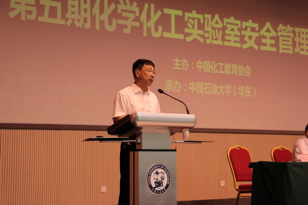中国化工教育协会会长、教育部高等学校化工类专业教学指导委员会副主任委员郝长江,我校副校长李兆敏、国有资产与实验室管理处相关领导、化学工程学院相关领导出席开班仪式。李兆敏致欢迎词,他讲到:“我校一直将实验室安全作为工作的重中之重,尤其是化学化工类实验室的安全管理,近年来采取了一系列措施、出台了多项管理制度,实验室安全管理工作正逐步走向规范化”。他希望与会人员通过本次培训,吃透精神、把握实质,进一步掌握实验室安全管理知识,为安全生产工作打下坚实基础。
