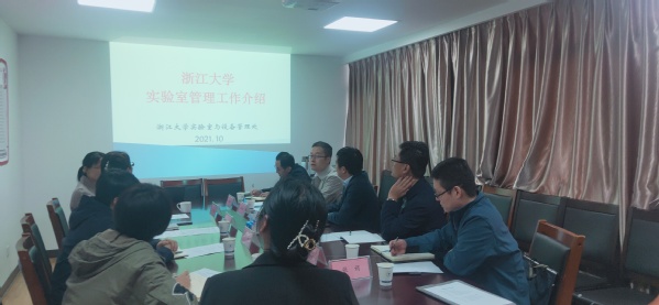 10月22日,为进一步提高业务水平,加强实验室管理相关工作,增进与兄弟院校的交流与合作,我校实验室管理处和高端化工与能源材料研究中心一行6人赴浙江大学进行调研交流。浙江大学实验室与设备管理处副处长孙健、孙益及科室负责人参加交流。