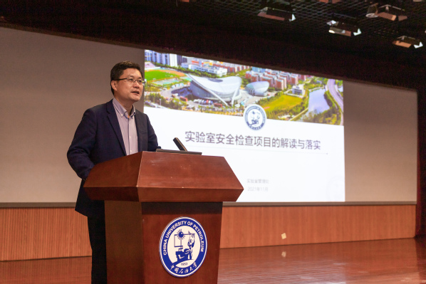 会议邀请教育部实验室安全检查专家、中国矿业大学实验室与设备管理处处长吴祝武做题为“高校实验室安全治理体系和治理能力双提升的探索与实践”的报告,报告从安全生产新形势、实验室安全新要求、问题隐患新特点等多个角度进行阐释,并分享了中国矿业大学在实验室安全管理方面的实践。我校实验室管理处副处长成宏涛做题为“实验室安全检查项目的解读与落实”的报告,结合学校实验室督导检查情况,从标准化、科学化、规范化管理的视角详细解读高校实验室安全检查项目表。